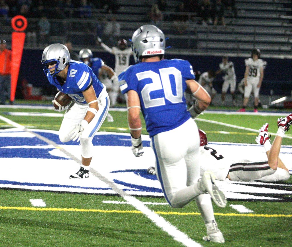 Hullopeter’s powerful 47-yard catch-and-run late in the third quarter ultimately served as the game-deciding score in a contest that Owatonna trailed 7-3 at halftime. The senior needed just three total grabs to rack up a team-best 97 receiving yards, adding a 33-yard insurance touchdown with 9:08 on the clock in the fourth quarter on a perfectly spun fade from teammate Jacob Ginskey.