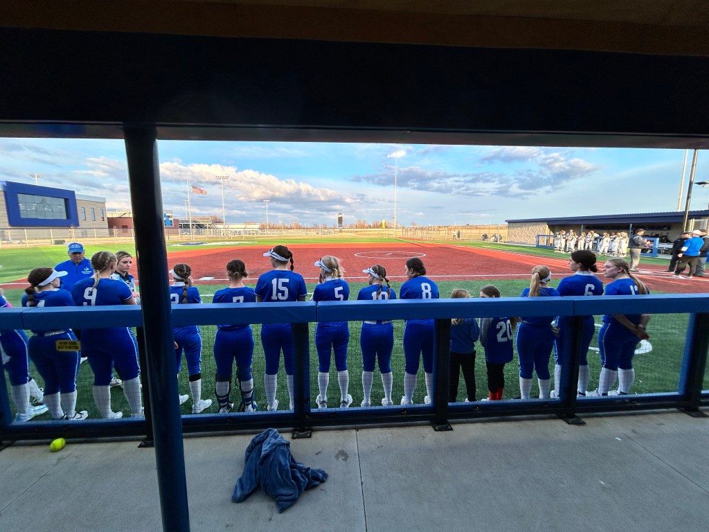 Over the next six-and-a-half innings, fans were treated to an exciting, albeit occasionally choppy, showdown between a pair of Big Nine Conference foes at the newly-minted Federated Softball Field. Wedged between the main educational building and the sprawling practice fields on the far south end of the campus, the symmetrical 205-foot diamond features a giant Husky logo painted into the centerfield turf, a sharp blue scoreboard above the left field fence, a cozy grandstand, a new press box and two cavernous dugouts attached to a pair of giant storage sheds on both sides of the stadium.