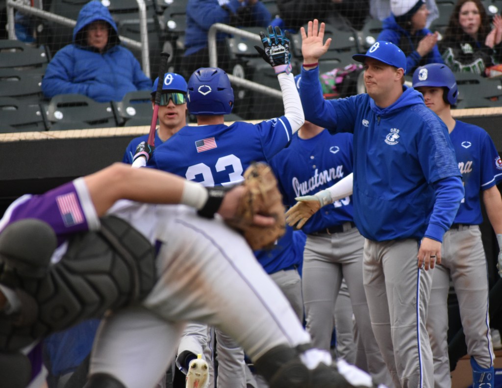 With the mandated two-hour game limit having expired, the Big Nine Conference counterparts sauntered out of their respective dugouts and lined up for the usual postgame handshake with the score still deadlocked at 2-2.