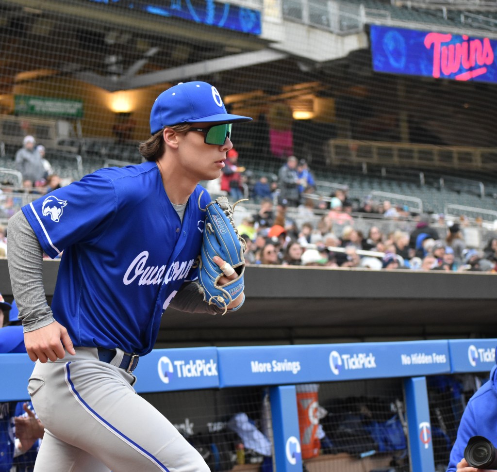Seykora went on to throw five solid innings against Red Wing and nearly ended the game in dramatic fashion after launching a triple that soared over the centerfielders’ head and short-hopped the base of the wall near the ‘411’ marker. The two-out rocket instantly sparked his teammates and ignited the well-traveled OHS contingent that packed the stands above the Huskies’ dugout. Most importantly, it also brought the game-winning run within 90 feet of home plate.