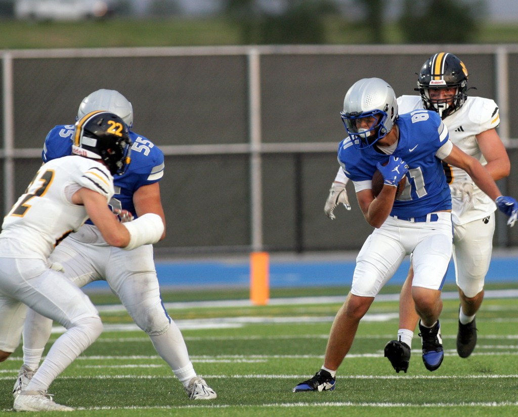 Though he dropped one pass, Arvig was Tackmann’s favorite target, catching six passes for 60 yards. Nolan Rolloff added three grabs for 20 yards.