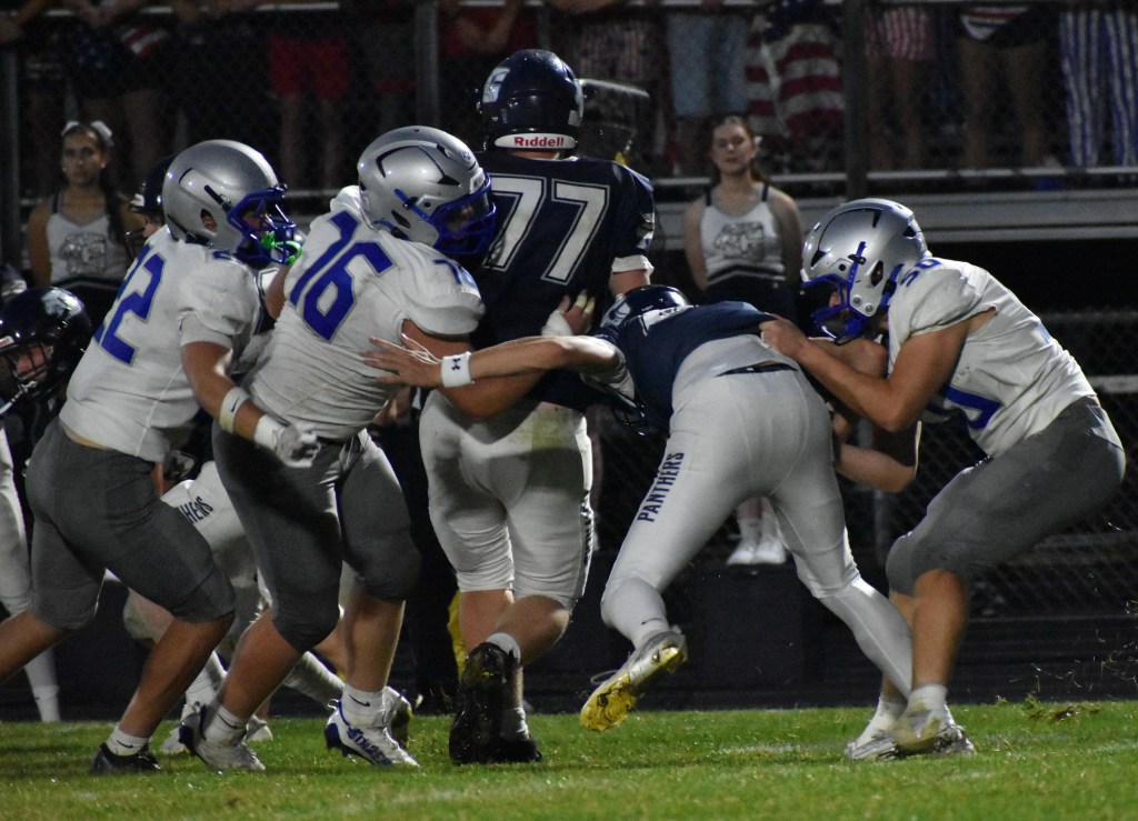 Logan Risser accounted for two of the Huskies’ three sacks on the evening while Carter Flatland led the way with nine tackles.