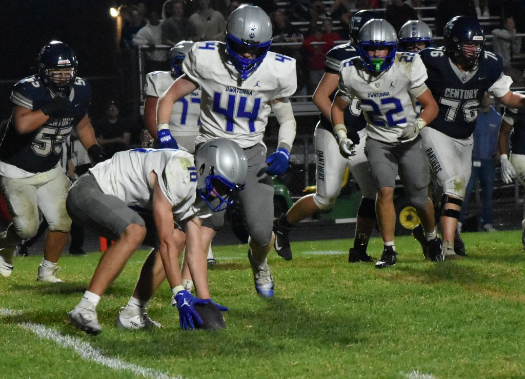 Owatonna — which led for the first time all season when Tristan Graham scored on a 10-yard run with 2:28 remaining in the opening stanza — was 0-for-2 in two trips deep into the red zone, including a fruitless possession that was snuffed out when Century stonewalled the Huskies on 4th-and-goal from just inside the Panthers’ 3 yard line with less than 20 seconds left before the break.