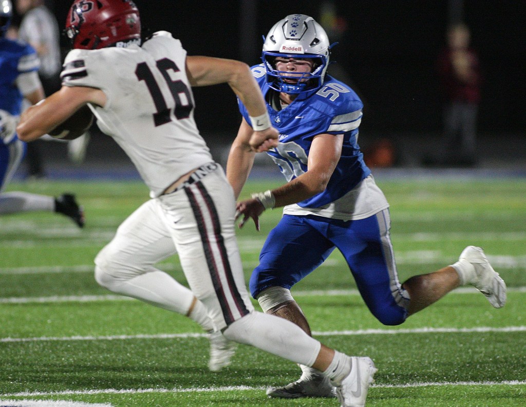 Running behind a reshuffled offensive line, which included the addition of 2024 starter-turned-linebacker, Logan Risser, at guard and 300-pound Kaden Keller at center, Tristan Graham rang up triple digits on the ground for the second consecutive game, finishing with a game-high 106 yards and a season-high 5.9 yards-per-carry. His 31-yard scamper with 8:07 left in the second quarter gave Owatonna a 6-0 lead and came on fourth and inches. Graham also caught one pass for 18 yards, converting a critical third down reception on a screen pass in the first half.