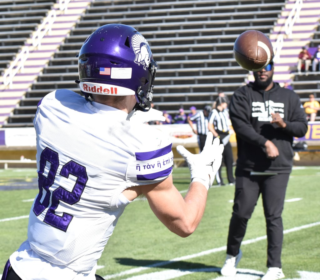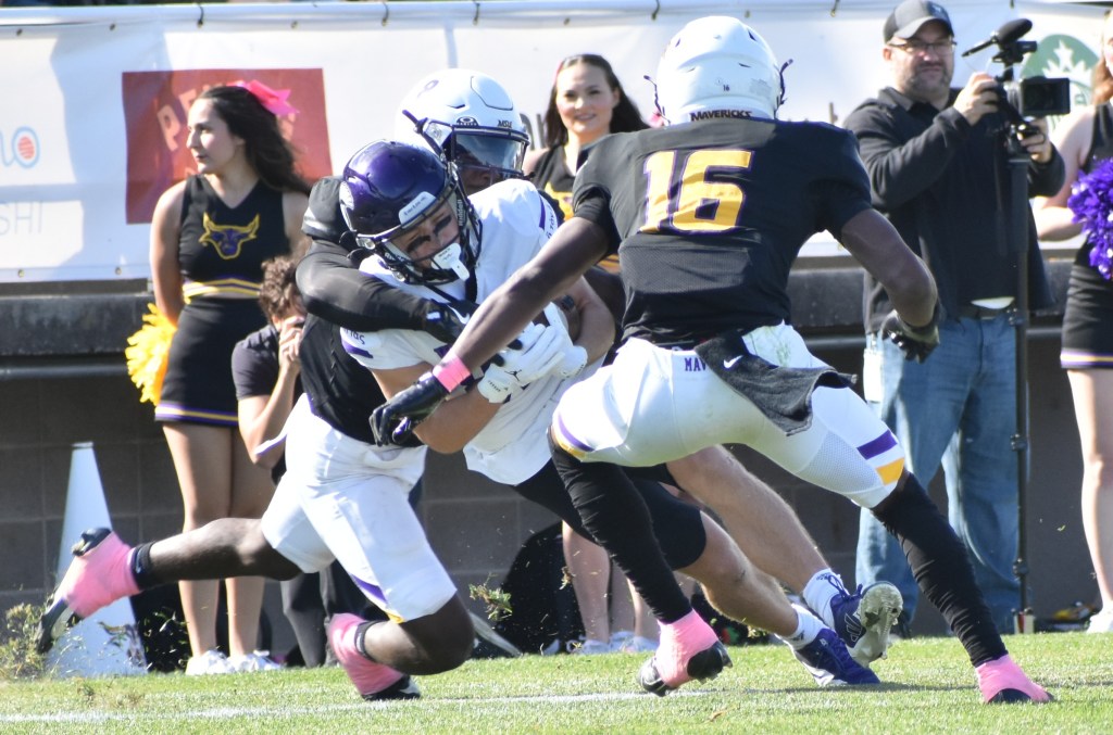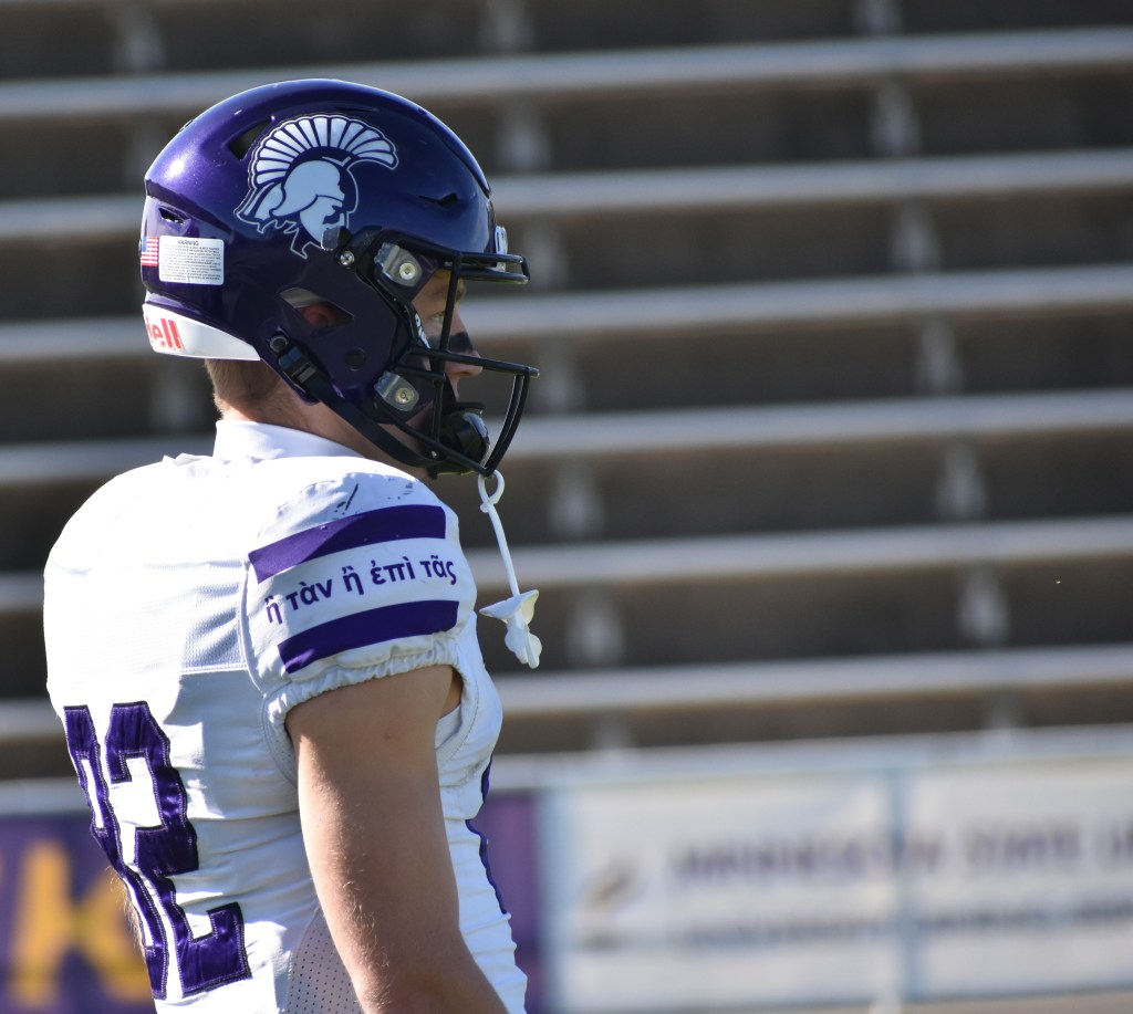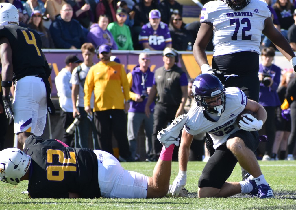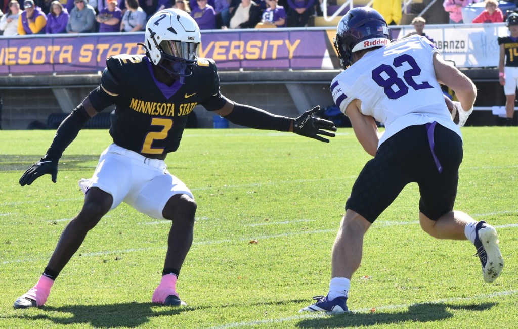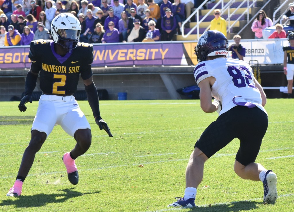 Nolan Ginskey finished with 6 catches for 68 yards and one touchdown against No. 14-ranked Minnesota State University on Saturday, Oct. 11. The Mavericks beat the Warriors, 47-21 at Blakeslee Stadium in Mankato.