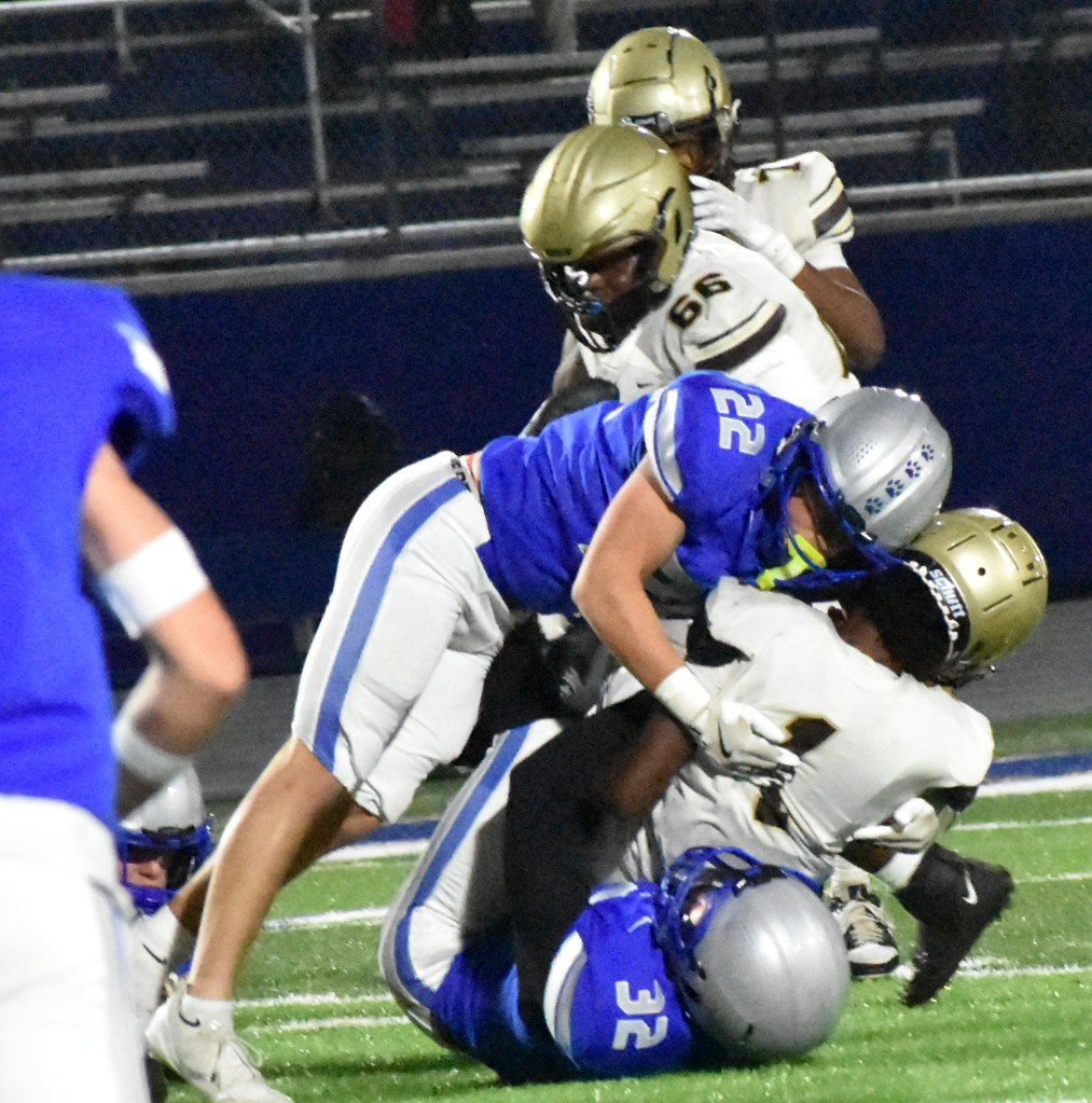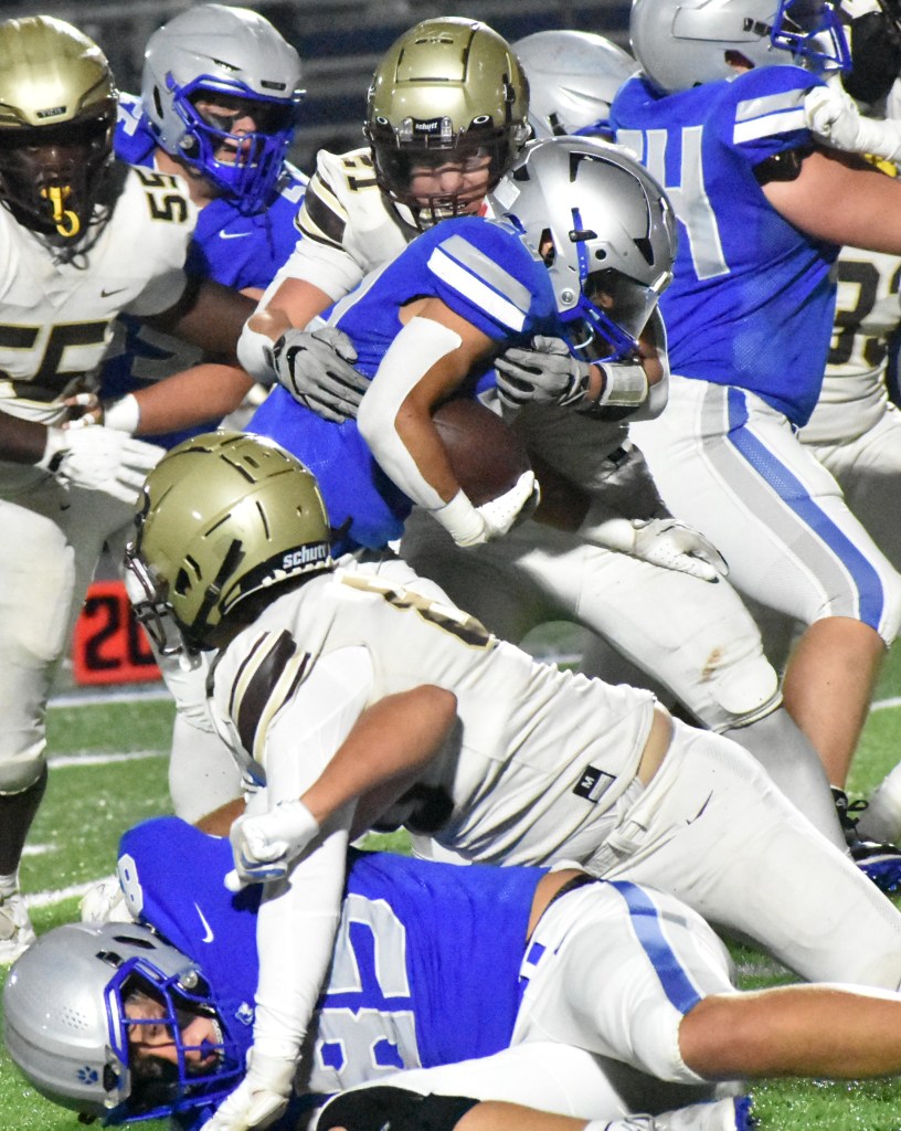 Owatonna’s offensive line won the battle in the trenches and the team won the game on the scoreboard in a punishing 28-13 victory in both team’s non-district regular season finale on Wednesday night at Federated Field.