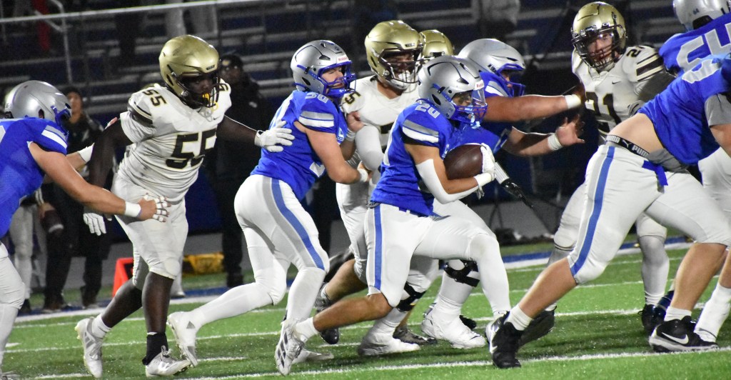 Defensively, OHS subdued Apple Valley’s typically effective ground game, holding the Eagles to just 62 yards on 17 carries (3.6 YPC). Risser led Owatonna’s with six tackles while Ryan McIntosh’s devastating sack and forced fumble on Barnslater served as the singular highlight of the unit’s strong and unified effort on Wednesday night that.